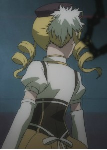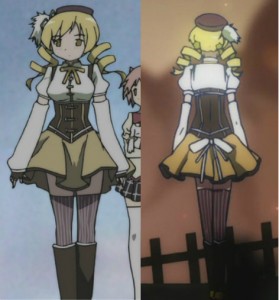 As in the first picture, it’s a V-shaped corset – points down in the center back and in the center front. It does give Mami a very hourglass shape; however, if you are attempting to mimic this, remember that if you are having difficulty breathing it is DEFINITELY too tight.